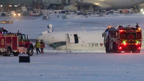 Toronto : On Monday February 17, 2025 A Delta Airlines flight Crash-landed at Toronto Pearson International Airport. Delta flight 4819, which took off from Minneapolis about 11:47 am, appears flipped on its back on a snowy runway.